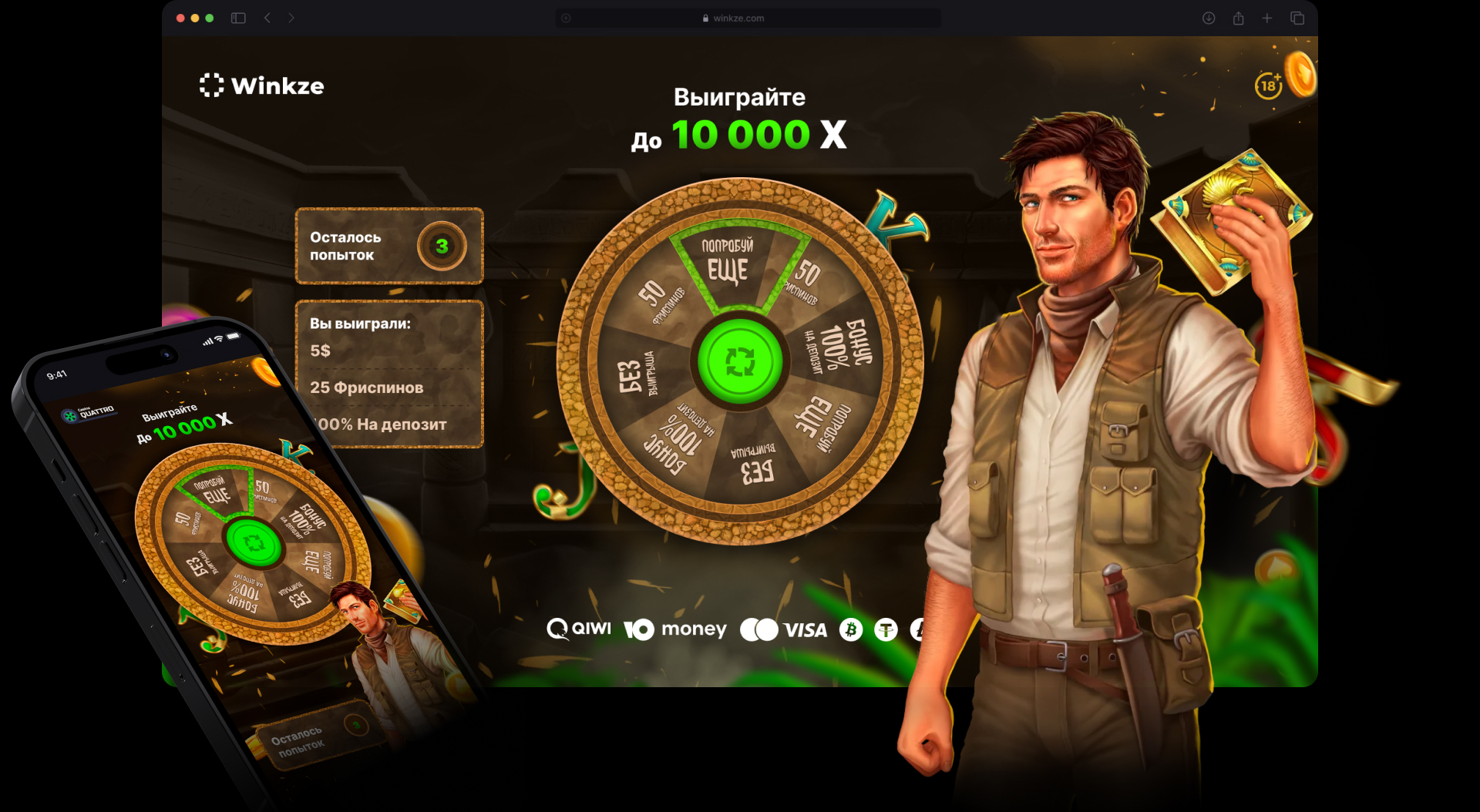 - Animated wheel of fortune with a three-spin mechanic offering rewards such as free spins, cash prizes, and deposit bonuses.