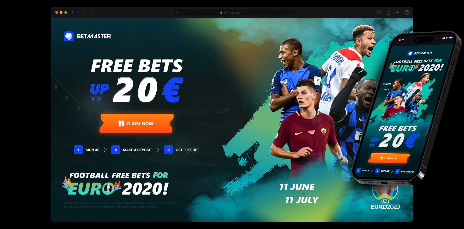 A landing page was developed for Betmaster, dedicated to the Euro 2020 football championship. The design features a vibrant and dynamic style with visuals of players and tournament-related elements, capturing the event’s atmosphere. The landing page is fully optimized for desktop and mobile platforms, ensuring a seamless user experience.